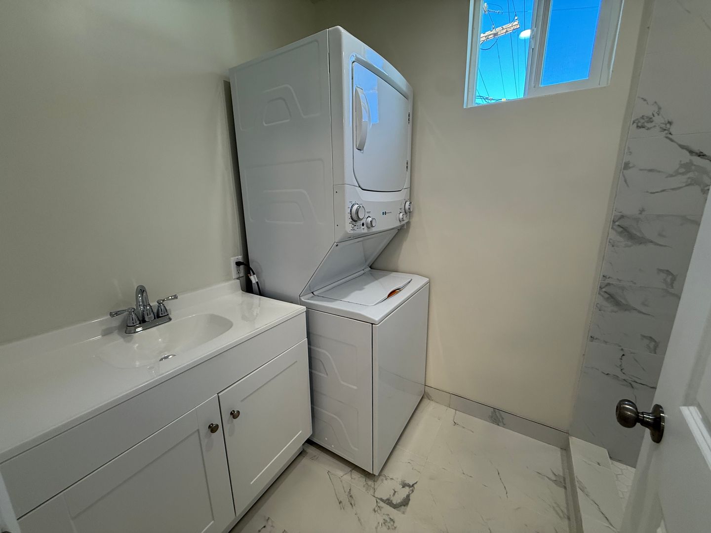 Enjoy cooking in the updated kitchen with a new large stove, included appliances, and in-unit washer and dryer for your convenience.