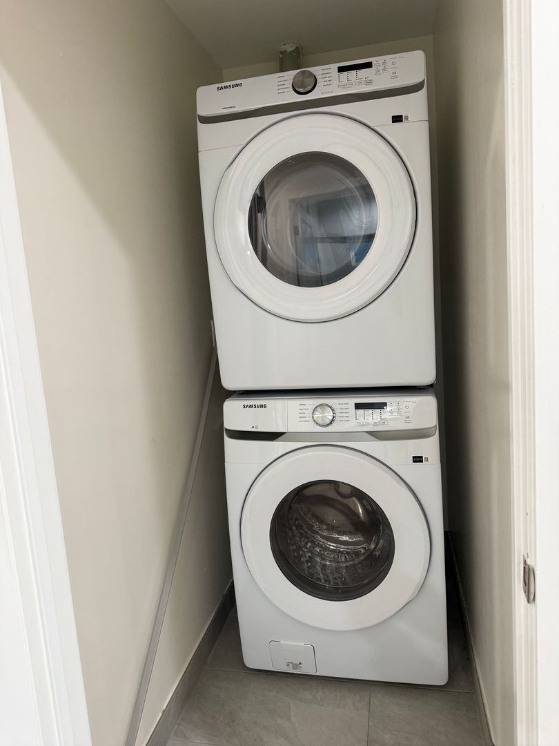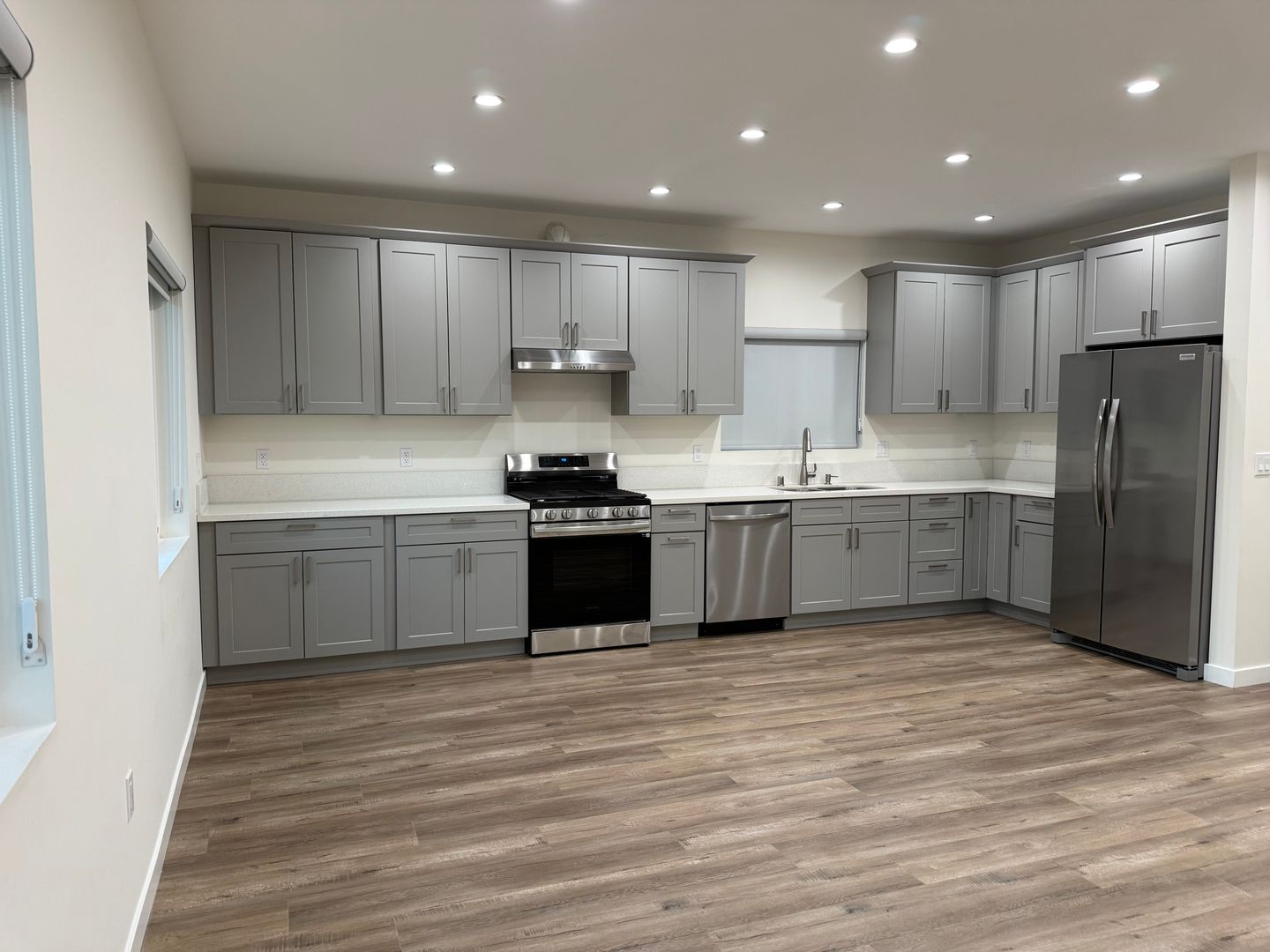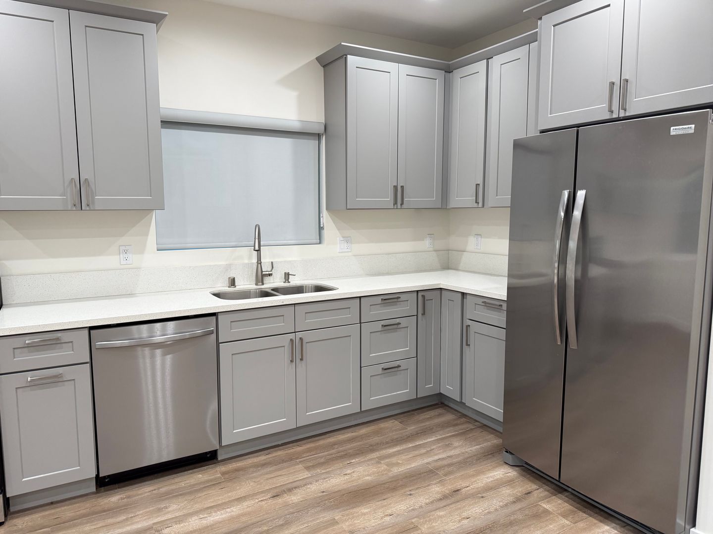 Inside, you'll find new laminate flooring, recessed lighting, and a modern open layout ideal for both relaxation and entertaining. The updated kitchen includes a refrigerator, dishwasher, and ample cabinet space. For added convenience, the unit features an in-unit washer and dryer.